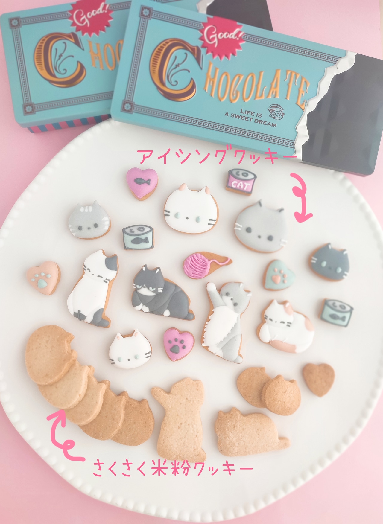 ミニサイズの可愛い猫のアイシングクッキーと、身体に優しいさくさく米粉クッキーを可愛い缶に詰めました。(*猫の柄はお選びいただけません。デザインは多少変わることがあります。)