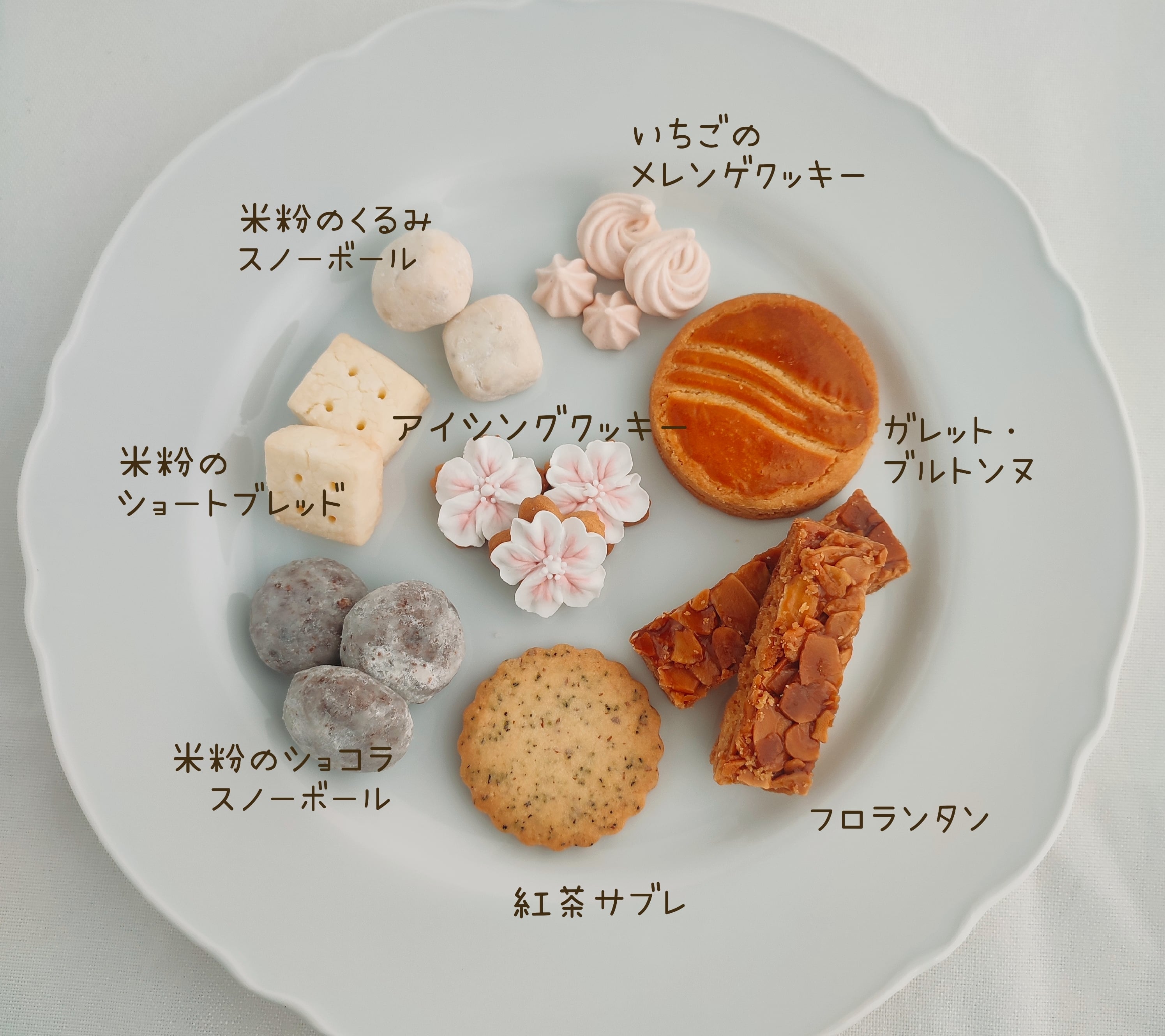 fufu_cookiesで人気のガレット・ブルトンヌやフロランタン、米粉クッキーなど8種類の焼菓子が詰まったとってもお得なセットです。